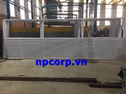Đối với nhà xưởng lớn, bạn nên lựa chọn cửa chớp thiết kế rộng, chia làm nhiều ngăn với chất liệu phun sơn tĩnh điện để đảm bảo độ chắc chắn, và an toàn cho nhà xưởng của bạn. Cửa sắt này hiện đang được công ty cơ điện NP sản xuất với khung sắt dày từ 1.2 đến 1.5mm biên dạng hộp, dạng C, và dạng khung Z; các nan chớp có độ dày 0.8mm và có biên dạng hình chữ Z, được hàn vào khung tạo sự chắc chắn, thông thoáng và tránh kẻ trộm phá hoại.