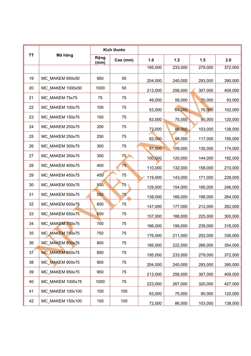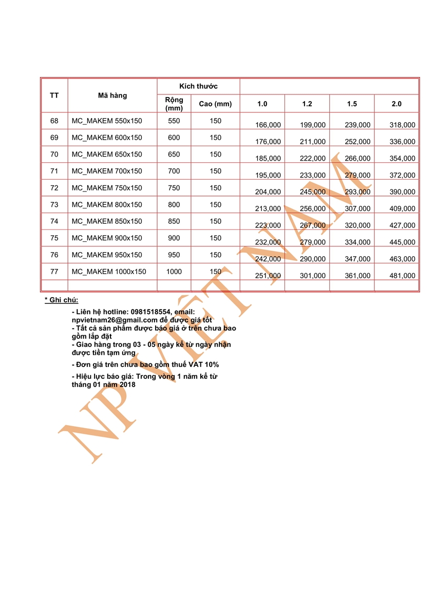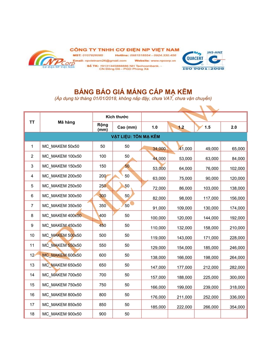 Chúng tôi xin gửi Quý khách hàng bảng báo giá máng cáp mạ kẽm năm 2018 dưới đây: