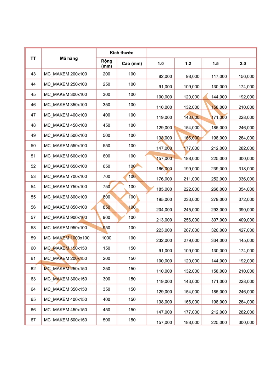 BẢNG BÁO GIÁ MÁNG CÁP MẠ KẼM GIÁ RẺ