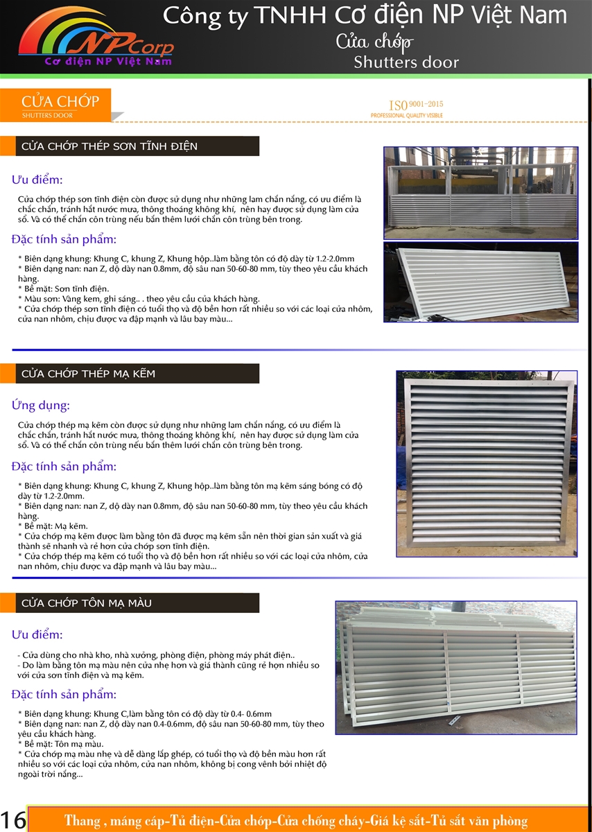 Cơ điện NP là đơn vị chuyên sản xuất cửa chớp nhà xưởng, cửa chớp sắt công nghiệp, đa năng trong việc cập nhật những công nghệ sản xuất mới hàng đầu, giúp làm tăng năng suất lao động, giảm chi phí nhân công, chi phí sản xuất, hạ giá thành sản phẩm.