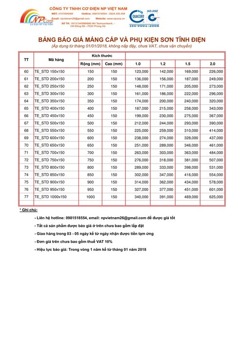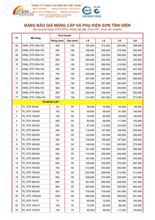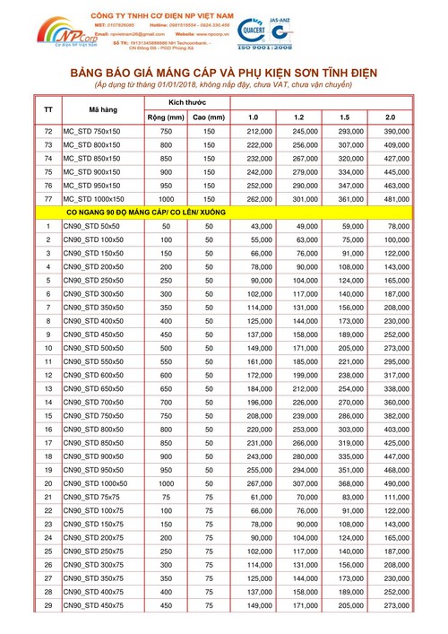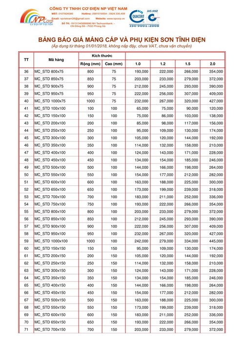 NP Việt Nam xin ửi Quý khách hàng bảng báo giá máng cáp sơn tĩnh điện giá rẻ năm 2018 tại Hà Nội.