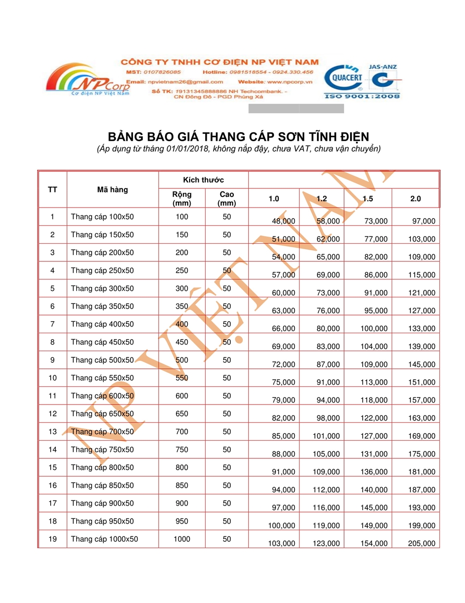 NP Việt Nam xin ửi Quý khách hàng bảng báo giá thang cáp Sơn tĩnh điện giá rẻ tại Lạng Sơn.