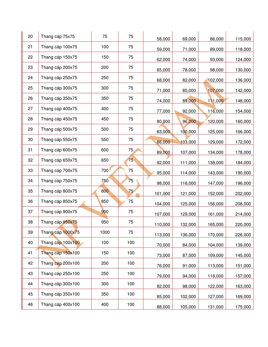 Bảng giá thang cáp sơn tĩnh điện chất lượng - Giá tốt tại Lạng Sơn