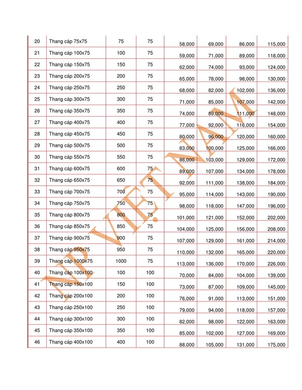 Bảng giá thang cáp sơn tĩnh điện của Cơ điện NP Việt Nam