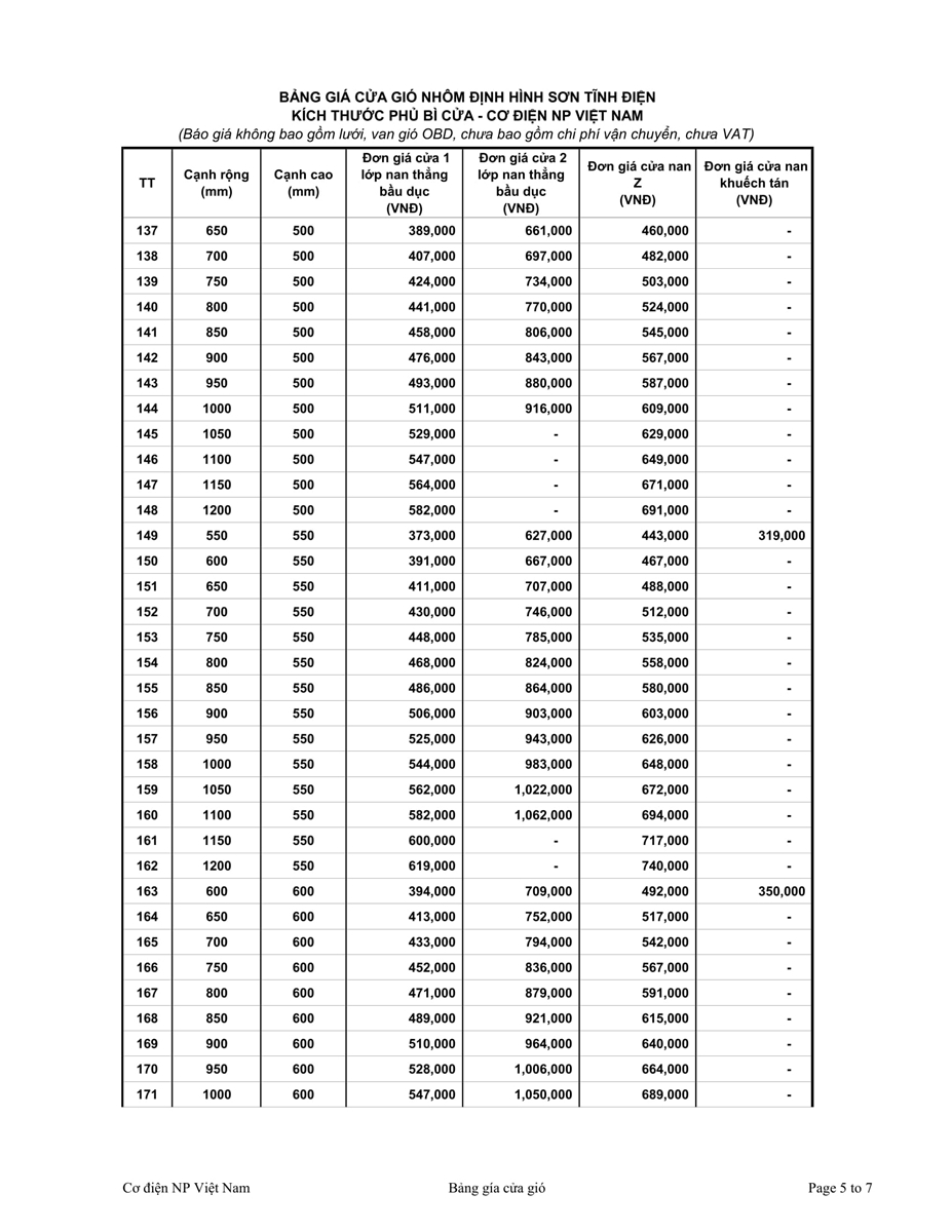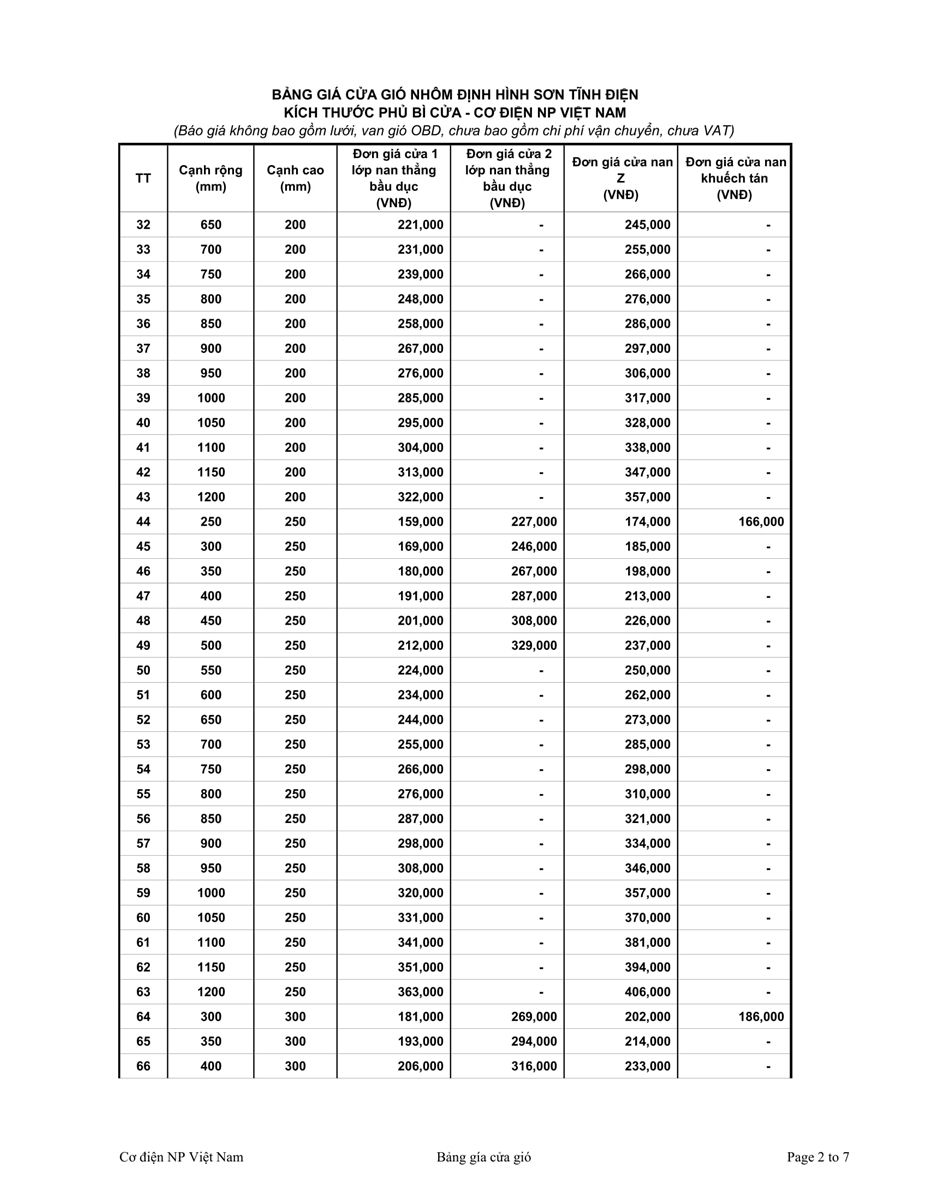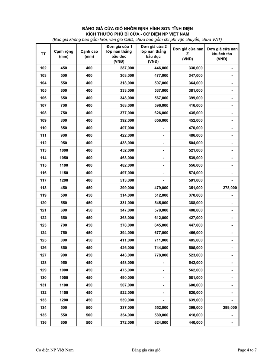 Link down: Bảng báo giá cửa gió nhôm định hình sơn tĩnh điện giá rẻ Hà Nội