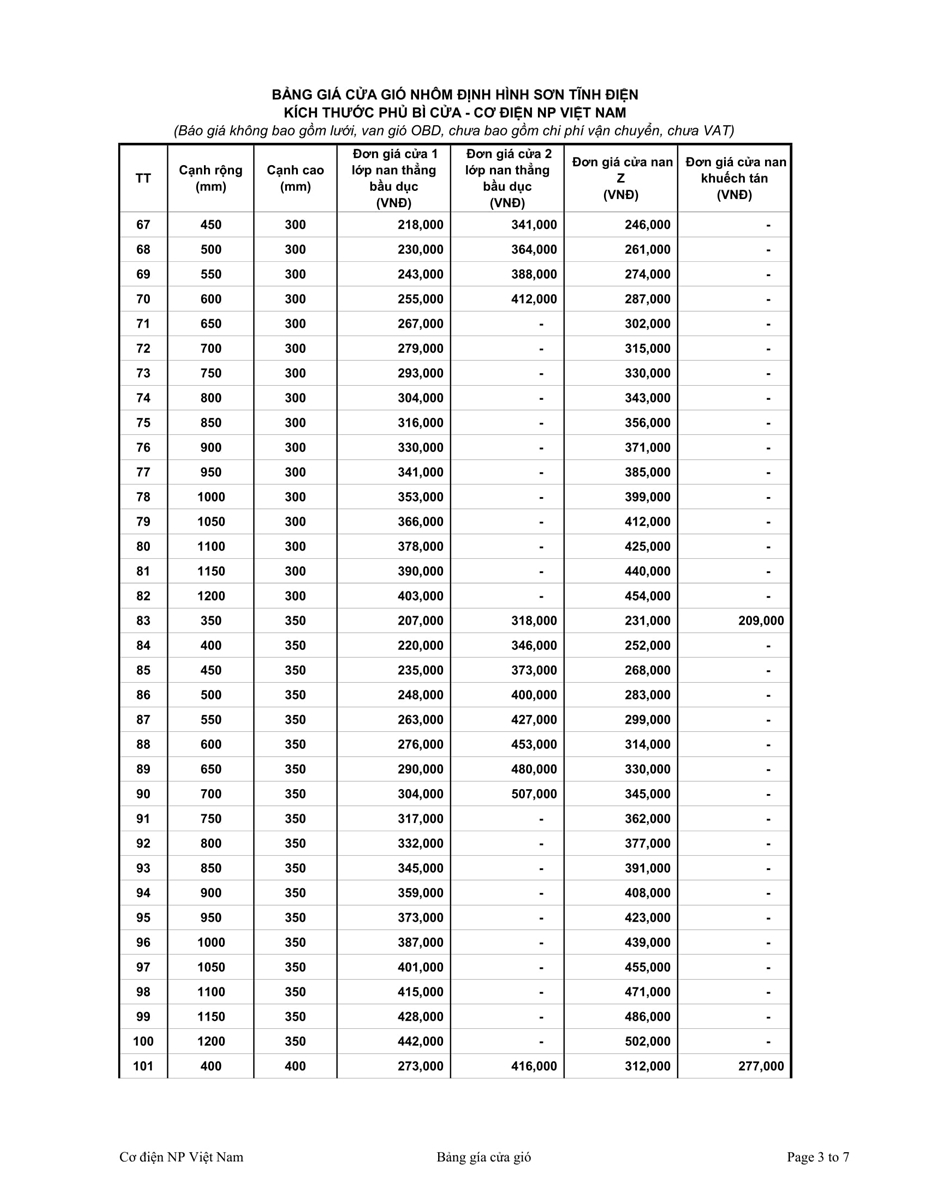 Để giúp khách hàng thuận tiện trong quá trình làm dự toán công trình, Cơ điện NP xin gửi tới quý khách hàng bảng báo giá cửa gió nhôm định hình sơn tĩnh điện mà chúng tôi đã thực hiện cho các dự án tại Hà Nội.