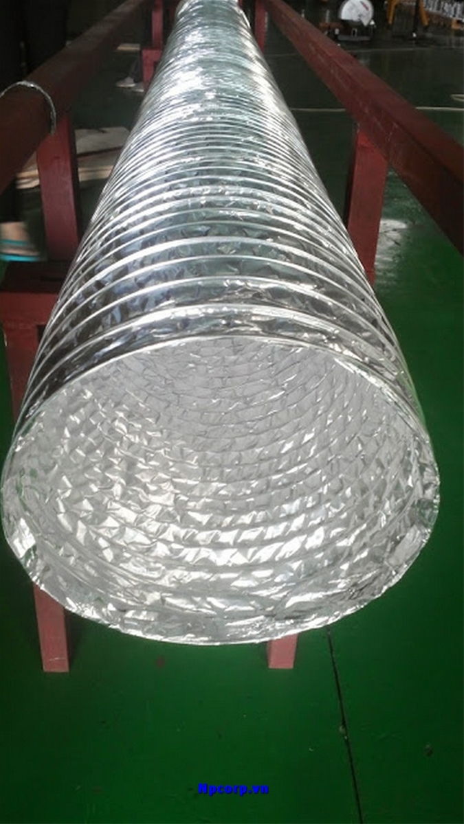 Ống gió mềm không cách nhiệt - ống gió mềm không bảo ôn gồm lớp nhôm và Polyester nhiều lớp ép lại, và được củng cố với dây thép cứng xoắn tròn vào các lớp lá nhôm và polyester. Bằng công nghệ này, ống được xoắn tròn với một kết cấu liên tục và nhiều lớp tạo thành ống dẫn không khí lưu thông linh hoạt, chịu được nhiệt độ cao, có tính đàn hồi và rất dẻo dai.