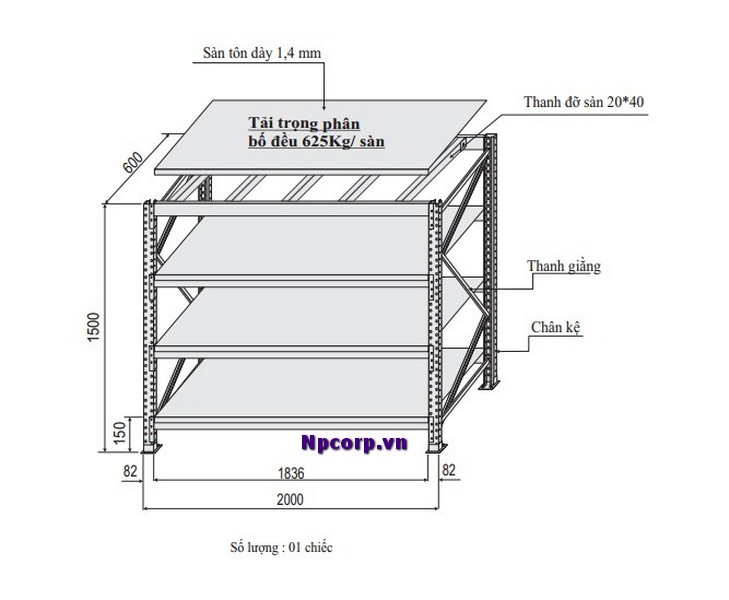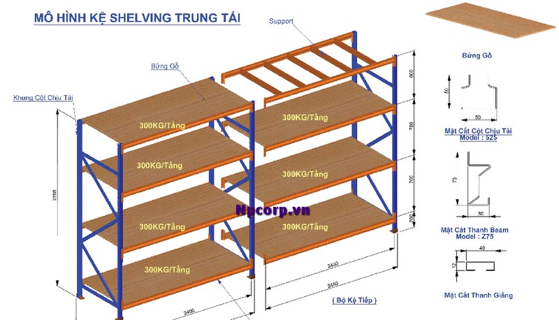 Kệ trung tải: được thiết kế bởi các chân trụ omega và mâm sắt, thép cao cấp theo tiêu chuẩn thép Nhật bản JIS, sơn tĩnh điện tự động trên dây chuyền trang thiết bị hiện đại để chứa hàng hóa với tải trọng lớn, mỗi tầng chứa hàng có thể lên đến 2000kg/tầng.