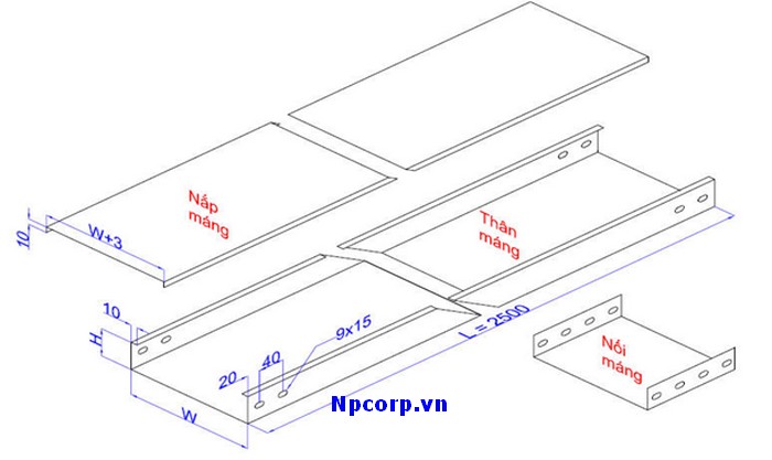 Chiều rộng (W): 200mm x chiều cao (H): 100mm và chiều dài (L) từ 2500mm – 3000mm được làm bằng nhiều vật liệu khác nhau như: Thép không gỉ (Inox) hoặc là thép sơn tĩnh điện, thép mạ kẽm, thép mạ kẽm nhúng nóng. Với mỗi loại kích thước và vật liệu làm nên máng cáp sẽ có các giá khác nhau.