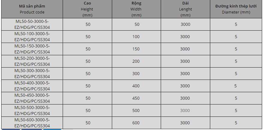 Mã sản phẩm: MLX + Rộng-Dài-Đường kính thép lưới