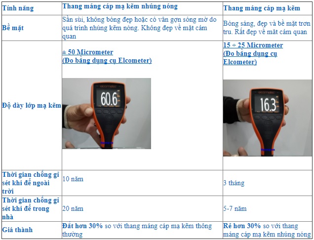 THANG MÁNG CÁP MẠ KẼM NHÚNG NÓNG VÀ THANG MÁNG CÁP MẠ KẼM THÔNG THƯỜNG