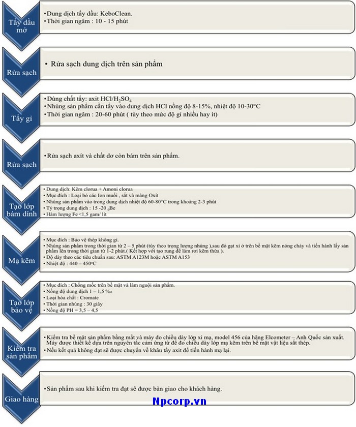 + Sản phẩm sau khi được xử lý bề mặt sạch và hết bám rỉ, sẽ được phủ lớp mạ kẽm và đánh bóng bề mặt: