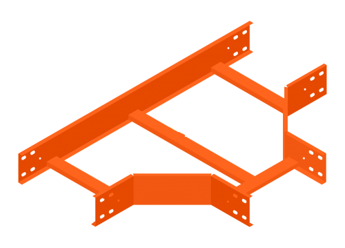 Tê Thang cáp- Tê thang điện - Flat tee cable ladder Tê thang cáp ( Hay còn gọi là Ngã Ba) dùng để chia hệ thống thang thành ba hướng trên cùng một mặt phẳng.